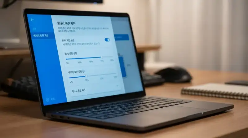 | 애플 맥북 | 시스템 설정 → 배터리 → 배터리 상태 → 최적화된 배터리 충전 | 80% 자동 제한 (학습 기반) |