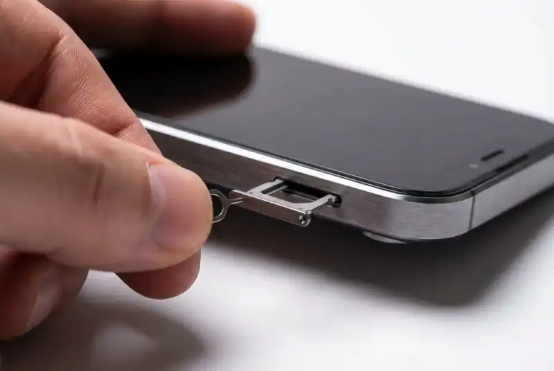 2단계로 유심 트레이를 찾아요. 대부분의 스마트폰은 측면(왼쪽 또는 오른쪽)에 작은 구멍이 있는 트레이가 위치해 있어요. 갤럭시는 주로 상단 좌측, 아이폰은 우측 하단에 있어요. 유심핀을 구멍에 꽂고 살짝 힘을 주면 딸깍 소리와 함께 트레이가 튀어나와요.